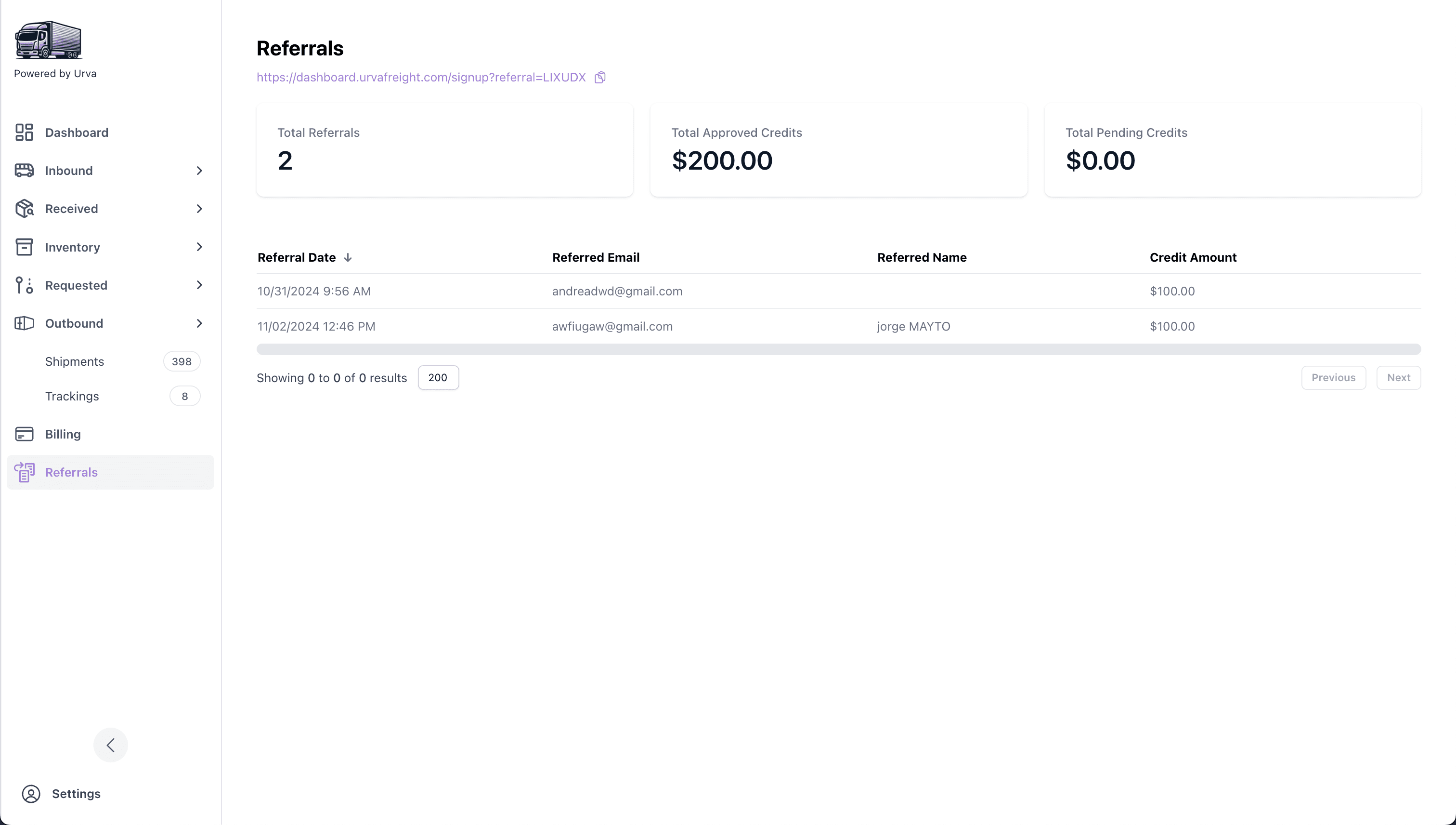 This page lets you view your pending and successful referrals.